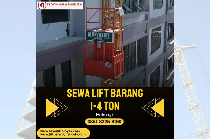 Sewa lift barang Jakarta Barat PT Jaya Mulia Mandala hadir sebagai solusi kebutuhan proyek dengan alat Lift Barang atau Lift Material yang berkualitas tinggi.